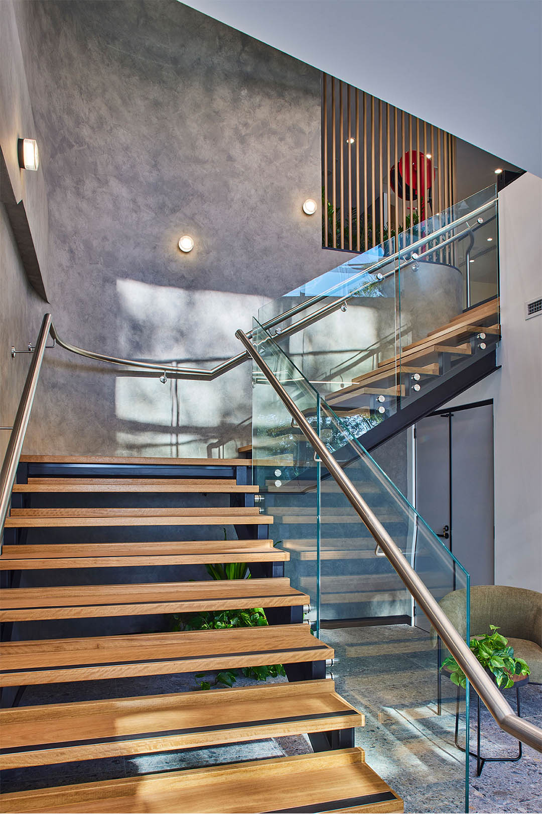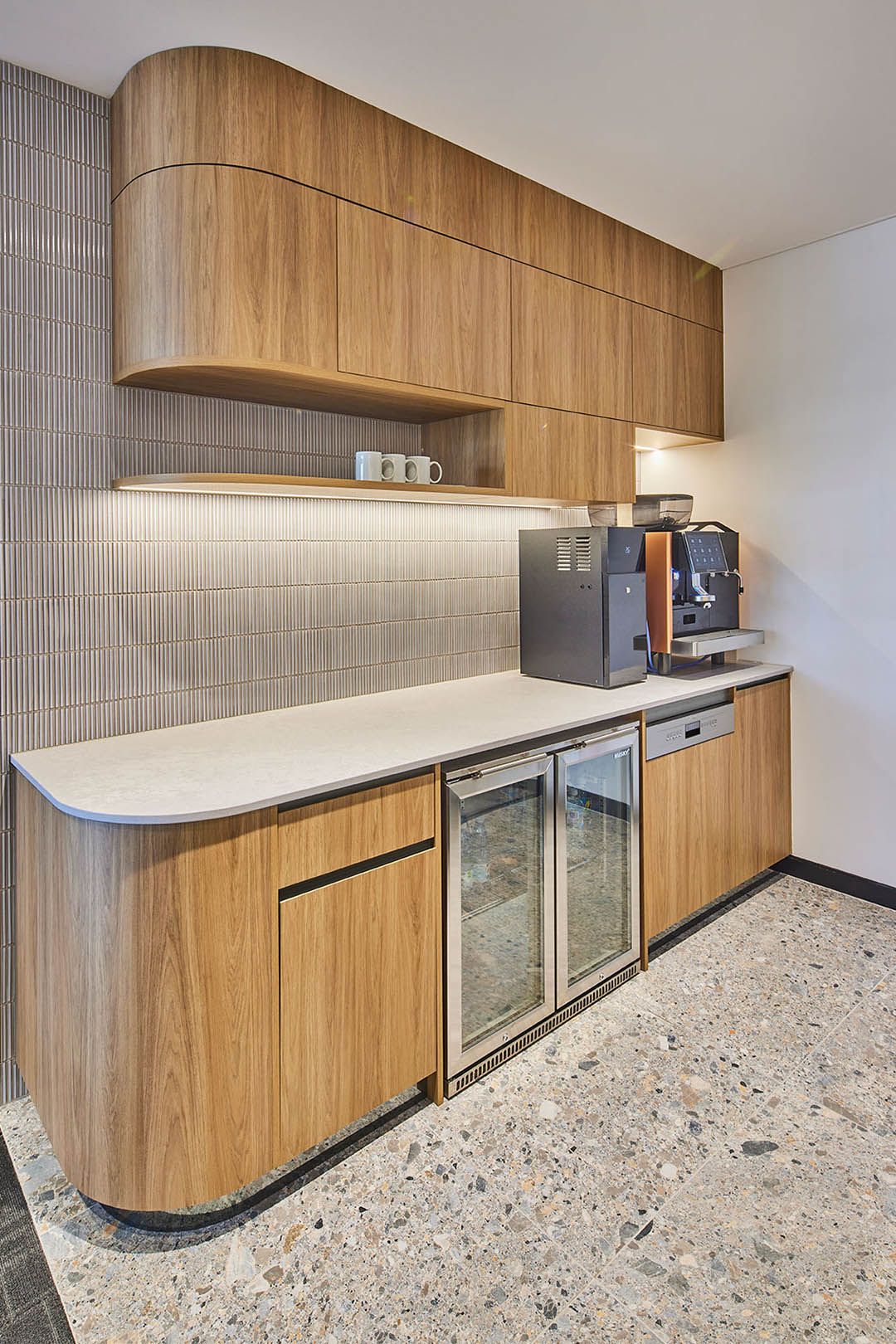 The project delivered a comprehensive commercial fitout upgrade, transforming the main entry and office areas and introducing a new passenger lift and revitalised external façade. Guided by a client-provided design from Liquid Design, the team focused on enhancing the arrival experience and ensuring the new works integrated seamlessly with the existing office environment. The result is a cohesive, modernised workplace that supports daily operations and improves the overall user experience.