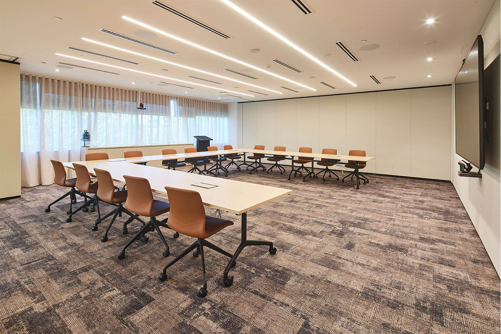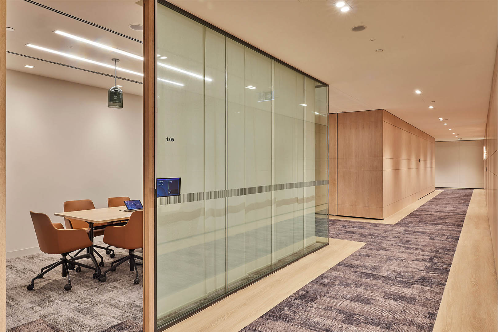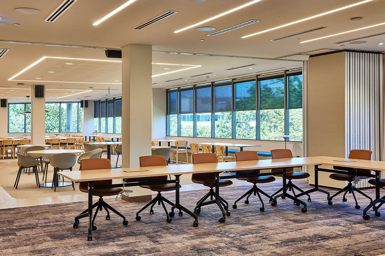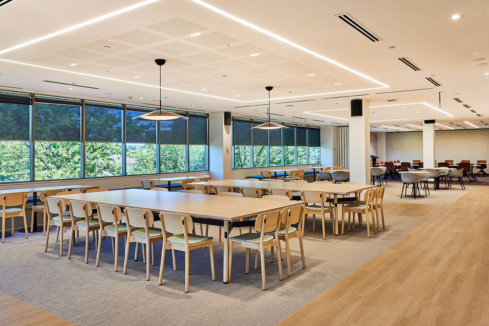 Operable wall systems, acoustic panelling and soft finishes were integrated to allow breakout, meeting and function spaces to expand and contract while maintaining privacy and acoustic separation, supporting the needs of a busy legal office environment.