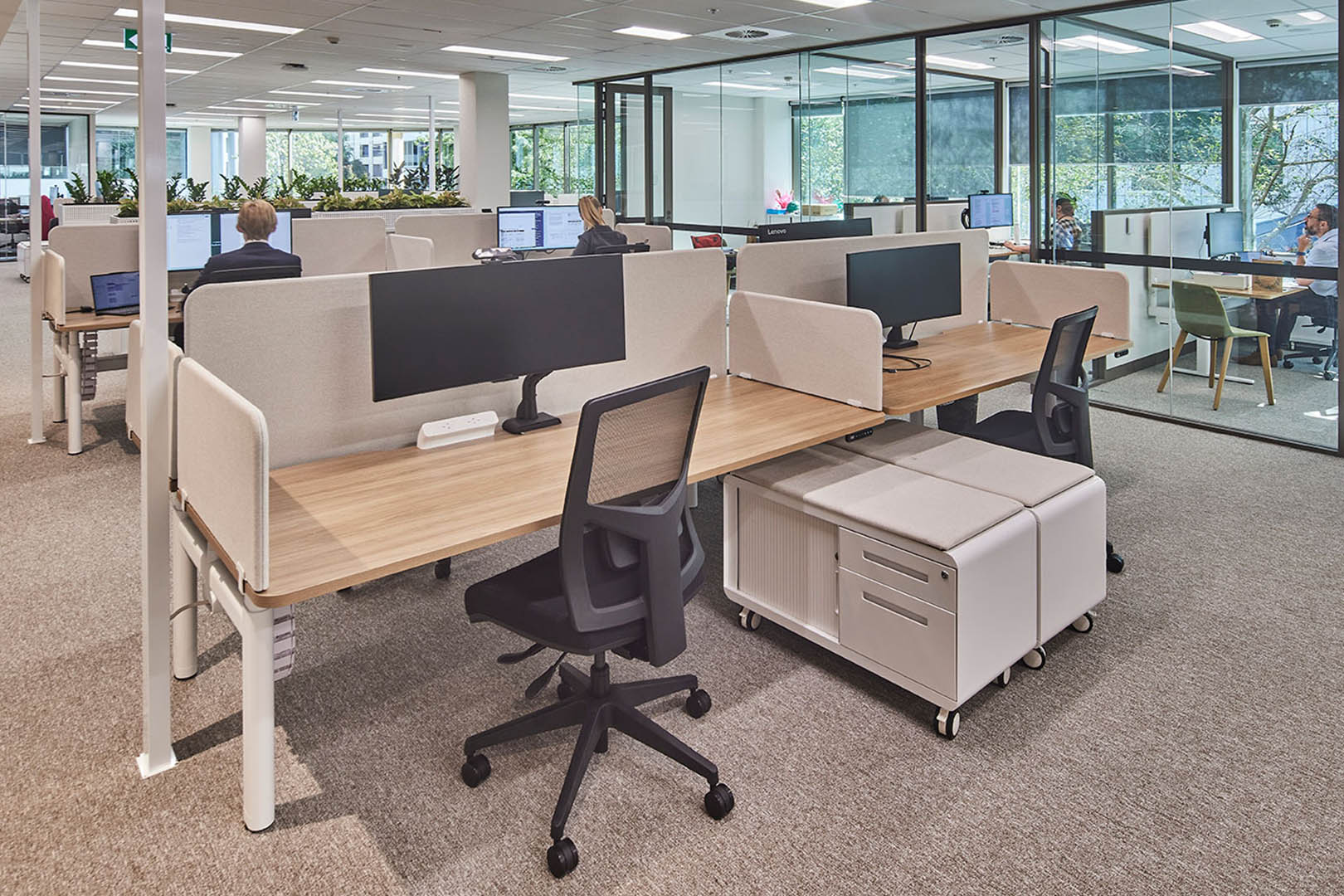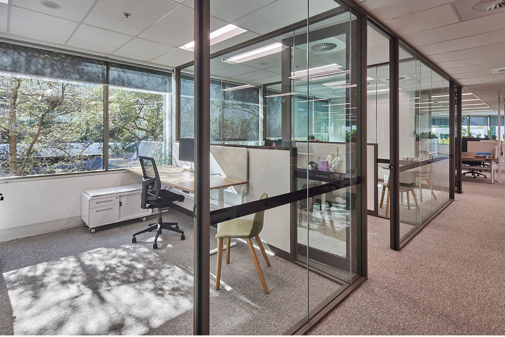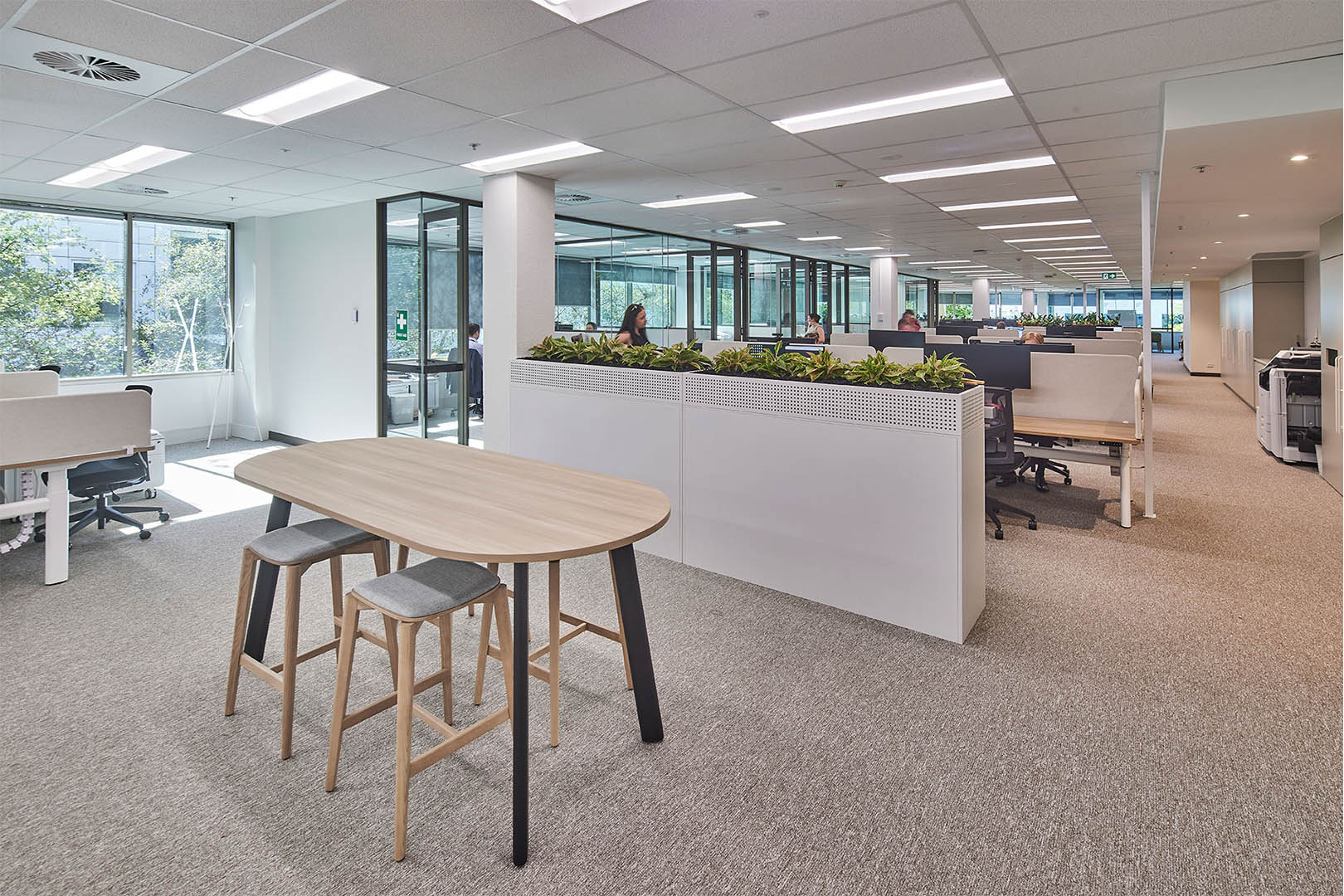 Acoustic performance and flexibility were key drivers for the Maddocks workplace. Intermain refined layouts, services coordination and material selections to support a range of functions including meetings, collaboration, events and staff amenity.