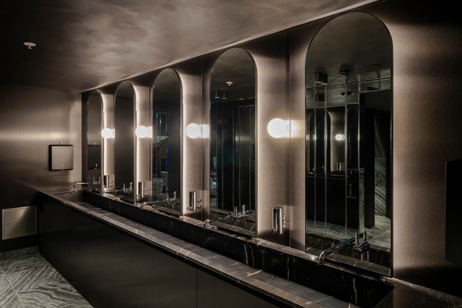 Intermain’s in-house joinery expertise was instrumental in delivering bespoke elements, including a custom reception desk, archways, beauty bars, fitness stages, locker room benches, and staff kitchenette, ensuring every detail aligned with the brand’s aesthetic and functional design goals. The refined material palette of polished stainless steel, terrazzo tiling, and premium upholstery contributes to a sleek, premium aesthetic that reinforces One Playground’s brand identity.