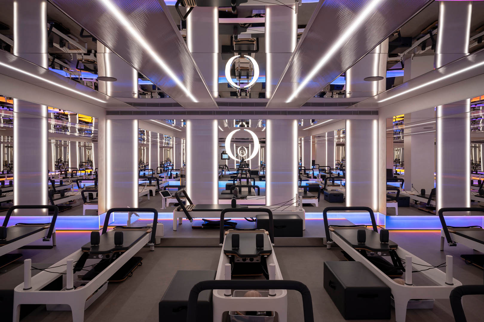 A dynamic lighting strategy and mirrored surfaces heighten the sense of movement, reinforcing the gym’s high-tech and immersive atmosphere. Every design element amplifies the energy of the space, where cutting-edge technology and refined finishes come together to inspire movement and transformation.