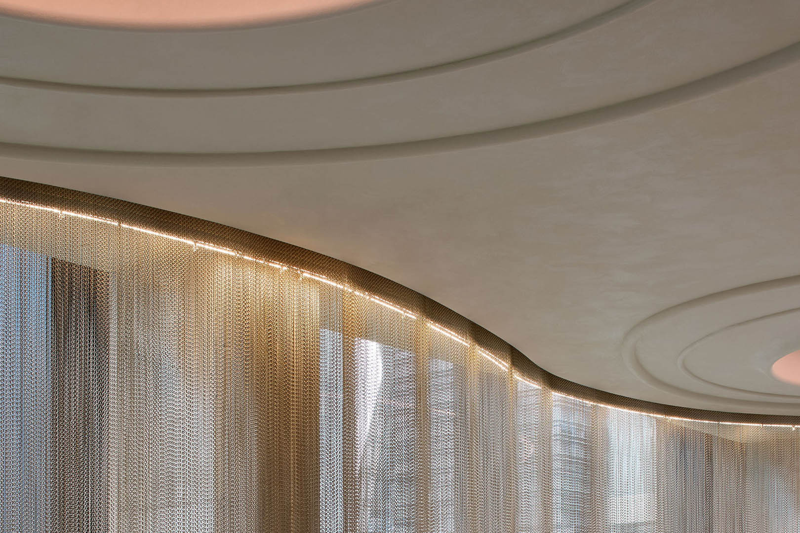 Further innovation was applied to integrate services within Newmat stretched ceilings and deliver mirrored ceiling elements without mechanical fixings – demonstrating the creative problem-solving and precision execution behind the project’s standout design.